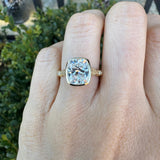 A true masterpiece, this one-of-a-kind vintage-style engagement ring is set with a breathtaking elongated lab grown cushion-cut diamond.