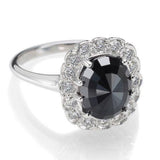 Shown with a 2.82 carat black diamond and .36cts white diamonds, in 14kt white gold.