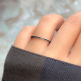 A stream of mystical black diamonds seamlessly set in this design. A perfect wedding band or an edgy addition to your collection of stacking rings. This delicate eternity band is both classic and badass! Shown with 0.25 carats total weight black diamonds in platinum. Band width is 1.25mm.