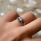 A one of a kind engagement ring set with a .50ct rose cut diamond, and .10tw accent diamonds.