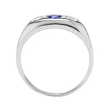 This androgynous ring is perfect as a fabulous ring or a non traditional engagement ring! This design has a .32ct Ceylon sapphire center stone with .22 carats total weight of diamonds on the sides. A striking combination and a timeless classic!