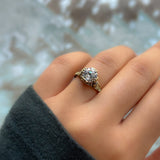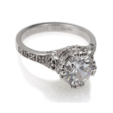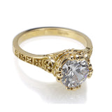 This one-of-a-kind engagement ring showcases stunning Gothic design. The exquisite hand-carved antique details create a captivating sense of depth and dimension, making it visually appealing from every angle.