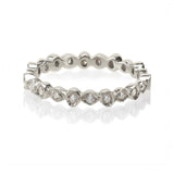 Handcrafted in rose gold, this vintage inspired scallop design has pave diamonds surrounding it. Beautiful on its own or paired with your engagement ring.