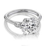 Shown with a 2.54c carat lab grown diamond center stone, F, VS2, with 04 carat total weight accent diamonds.