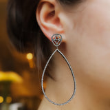 That are both feminine and bold. These champagne diamond teardrop earrings make a glam statement. A unique designer earring that's perfect for day or evening wear. Our exclusive design is handmade with movement making the diamonds dance under candlelight! These teardrop earrings are shown with 2.50 carats total weight diamonds, in blackened silver with gold posts backs.