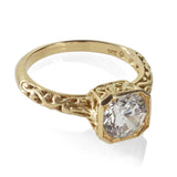 Inspired by NYC architecture, this intricate design has hand carved filigree detail surrounding it. A unique engagement ring that's romantic, refined and a perfect choice for those who love vintage designs with artisan workmanship.
