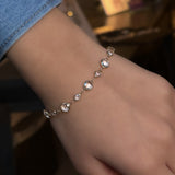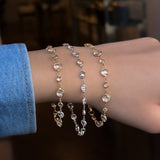 This white topaz bracelet will take you effortlessly from day to night. Understated enough to wear with any outfit but luxurious enough to be a delicate stand out. The rose cut white topaz stones catch the light brilliantly and the alternating sizes lend movement and allure. A beautiful gift or treat yourself! Pairs perfectly with White topaz necklace