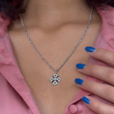 This exquisite diamond cross boasts a distinctive design, featuring intricately placed pave diamonds and a stunning rose cut diamond at its core.
