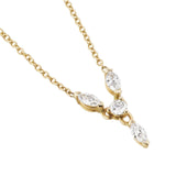 Lovely and delicate diamond necklace to add to your collection. Round and marquise diamonds are set in an alternating pattern to create a subtle V that draws the eye to the neck and the face. Subtle and striking. Shown here in 14K yellow gold with .30TW diamonds. Necklace measures 16" long.