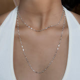 Shown in 36" with 3mm white topaz stones in 18kt white gold. Stone sizes vary between 2.5mm and 3.5mm.