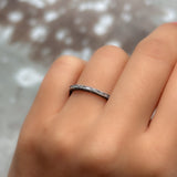 A streamline of diamonds surround this beautiful design. A delicate wedding ring that looks fabulous alone or stacked with your engagement ring!