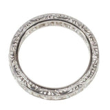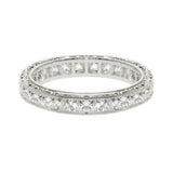 Vintage inspired wedding band has a streamline of unique French cut diamonds surrounding the ring. Brilliant and elegant, the hand engraved antique detail makes this look and feel like an heirloom ring. Shown with 2.00 carats total weight in platinum. Band width is 3.5mm.