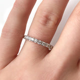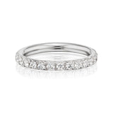 The groove setting technique enhances each individual diamond keeping it low profile and super comfortable. An exquisite eternity band that pairs perfectly with your engagement ring, or layered with your existing wedding band! Shown here with .70TW diamonds in 18K white gold. Band width is 2.5mm.