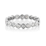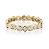 This unique, vintage inspired design incorporates alternating marquise and round diamonds to achieve a striking contrast to more simple bands. This feminine eternity ring can be worn as a compliment to an engagement ring, alone, or stacked with other bands to really stand out.