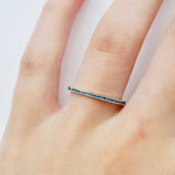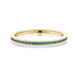 This unique band showcases stunning teal diamonds. Delicate and eye catching, this eternity ring pairs beautifully with your engagement ring and looks great all on its own.