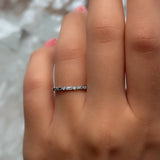 Shown with 0.20 carat total weight diamonds in 18kt white gold. Band width is 1.5mm