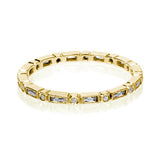 This design features a stunning combination of diamond baguettes and round diamonds, creating a vintage wedding ring that exudes elegance and charm. The alternating pattern of these exquisite diamonds adds a touch of uniqueness to the timeless design, making it a perfect choice to complement your engagement ring. Moreover, this band is not only a beautiful addition to your bridal set but also a stunning piece that can be worn on its own.