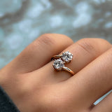 The ring features two side-by-side diamonds, representing the phrase "you and me" in French. This timeless engagement ring design signifies the union of two hearts and has a contemporary touch. It has been cherished for many centuries.