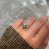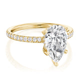 This exquisite engagement ring boasts a pear-shaped diamond weighing 1.75 carats, complemented by a discreet hidden halo design. Its delicate and refined appearance exudes regal elegance, making it a perfect choice for a discerning bride-to-be.