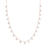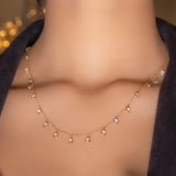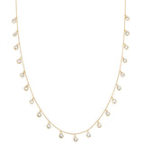 White topaz hang delicately from a yellow gold chain